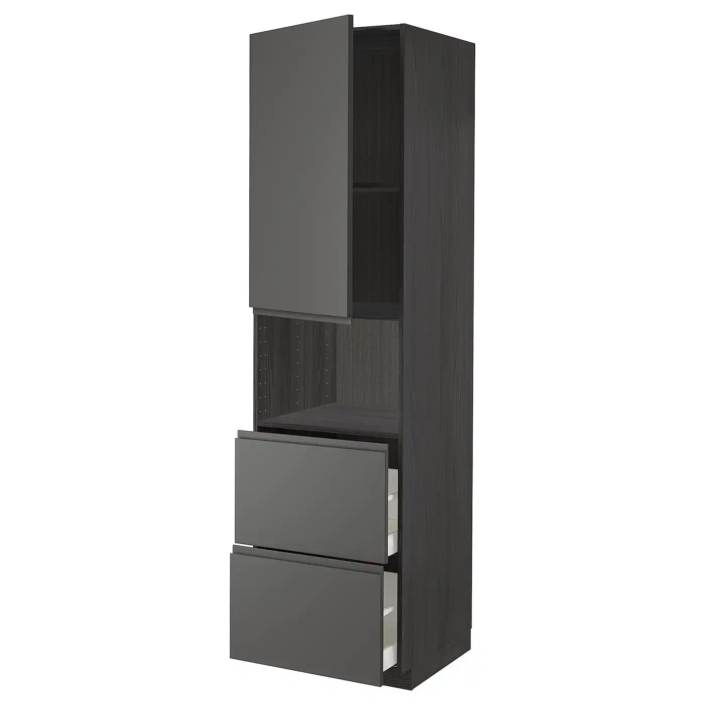 IKEA METOD High cabinet for microwave with door and 2 drawers 60x60x220 cm MAXIMERA black/VOXTORP dark grey