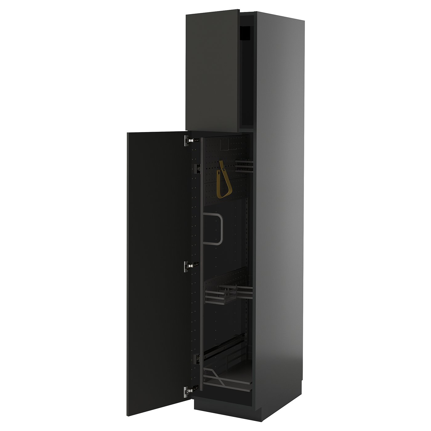 IKEA METOD High cabinet with cleaning interior 40x60x200 cm black-grey/Nickebo matt anthracite