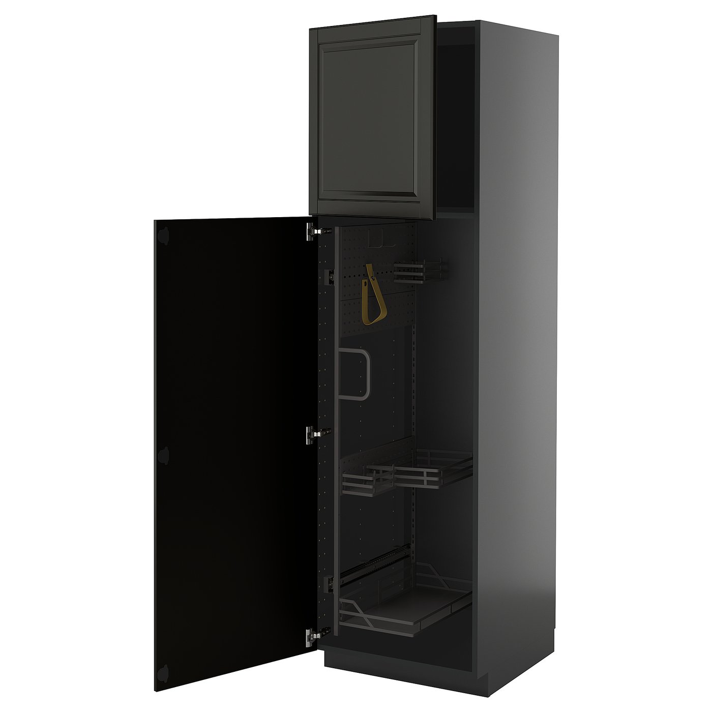(1 product)METOD High cabinet with cleaning interior - black-grey/Bodbyn black 60x60x200 cm