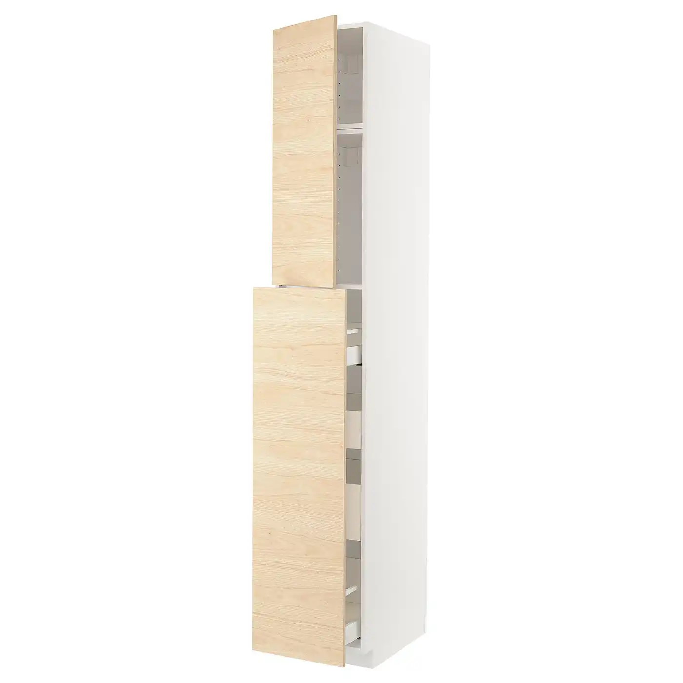 IKEA METOD High cabinet with drawers 40x60x240 cm MAXIMERA white/ASKERSUND light ash effect