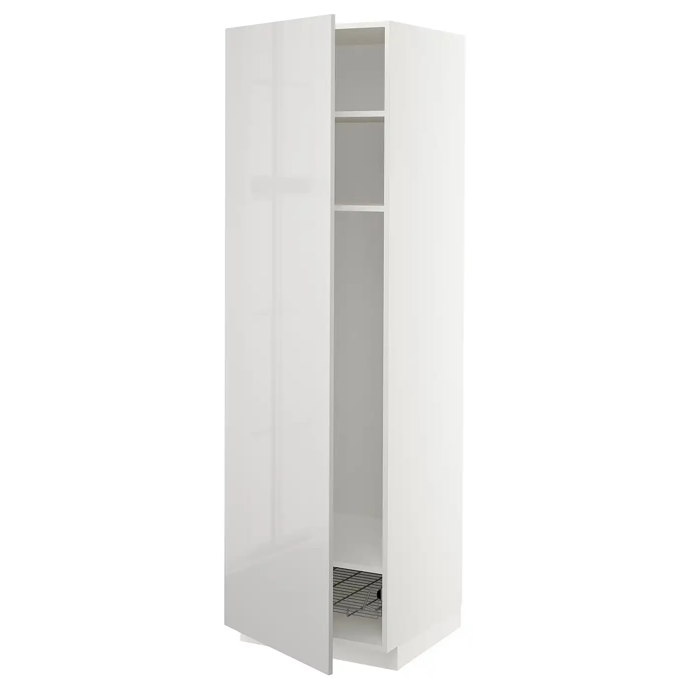 METOD High cabinet w shelves/wire basket - white/Ringhult light grey 60x60x200 cm