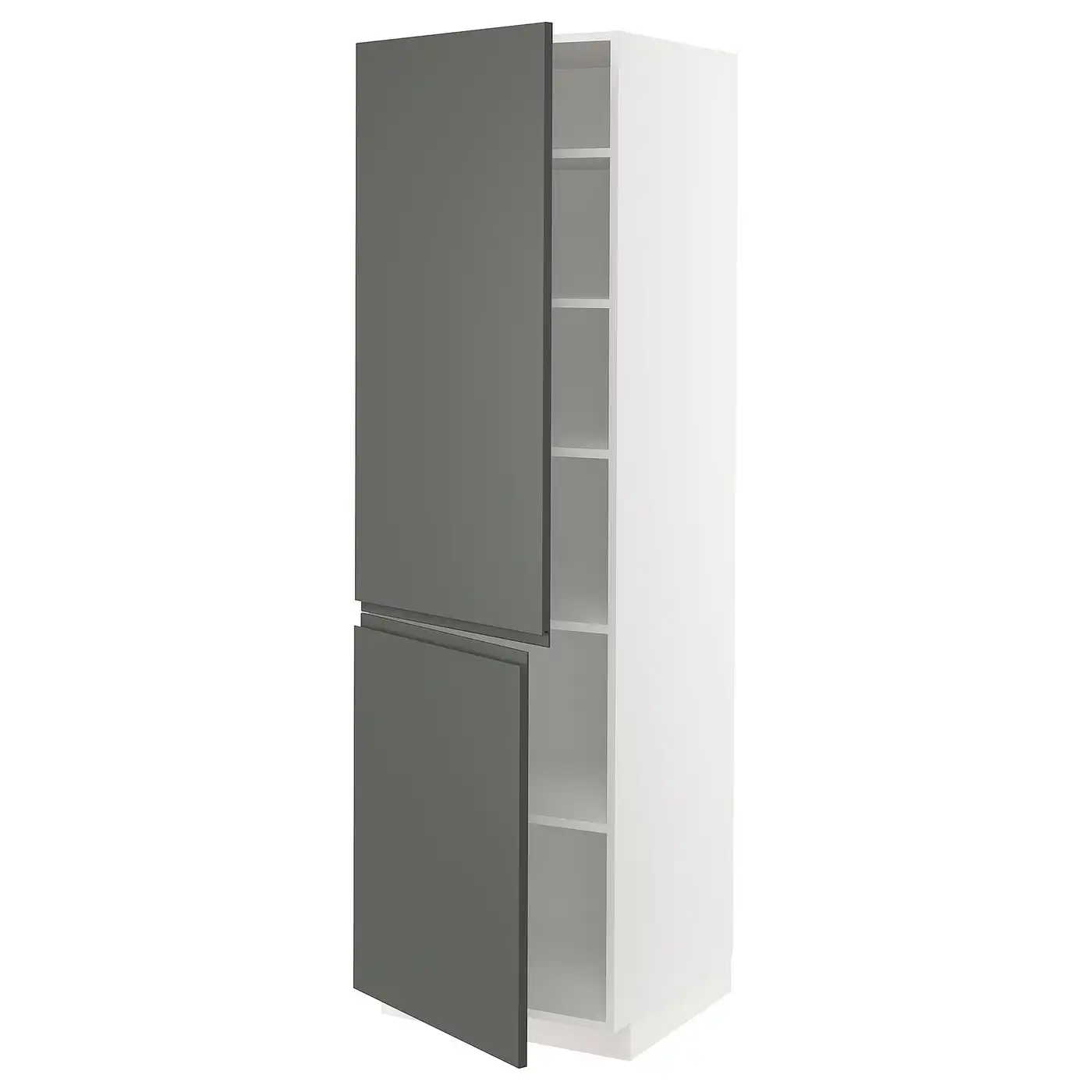 (2 products)METOD High cabinet with shelves/2 doors - white/Voxtorp dark grey 60x60x200 cm