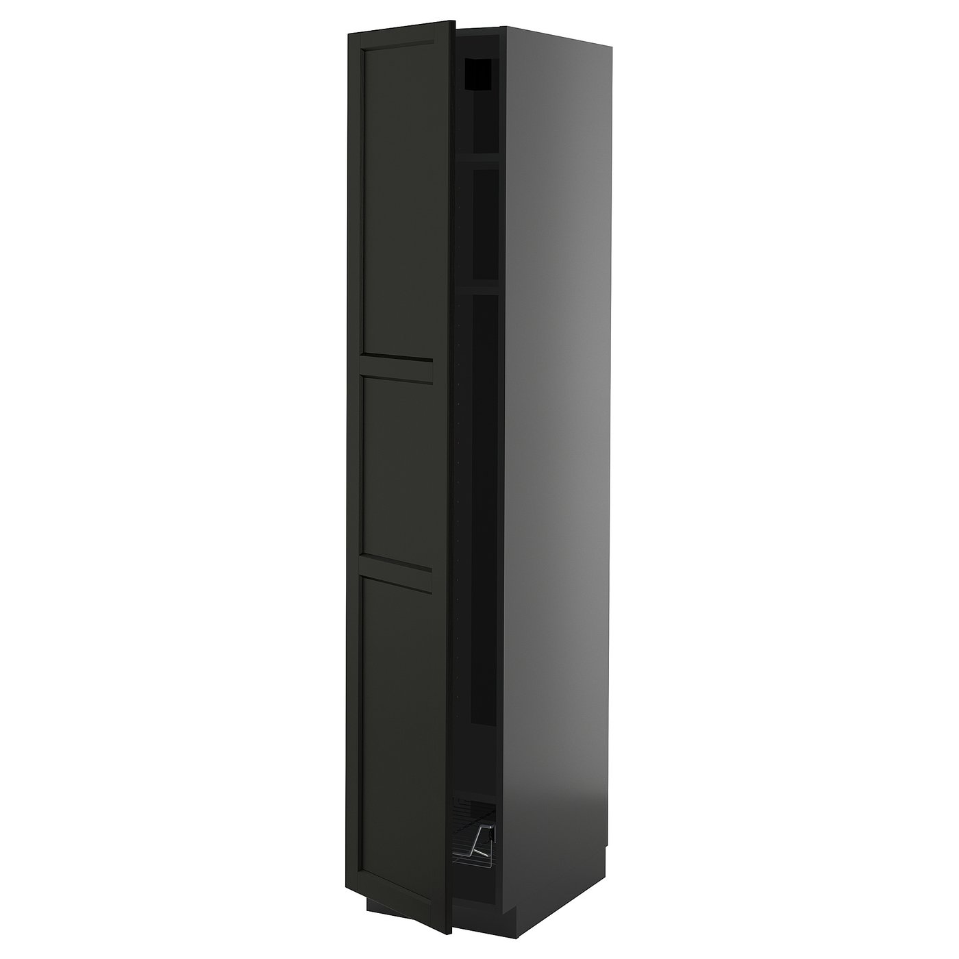 IKEA METOD High cabinet with shelves and wire basket 40x60x200 cm LERHYTTAN black stained