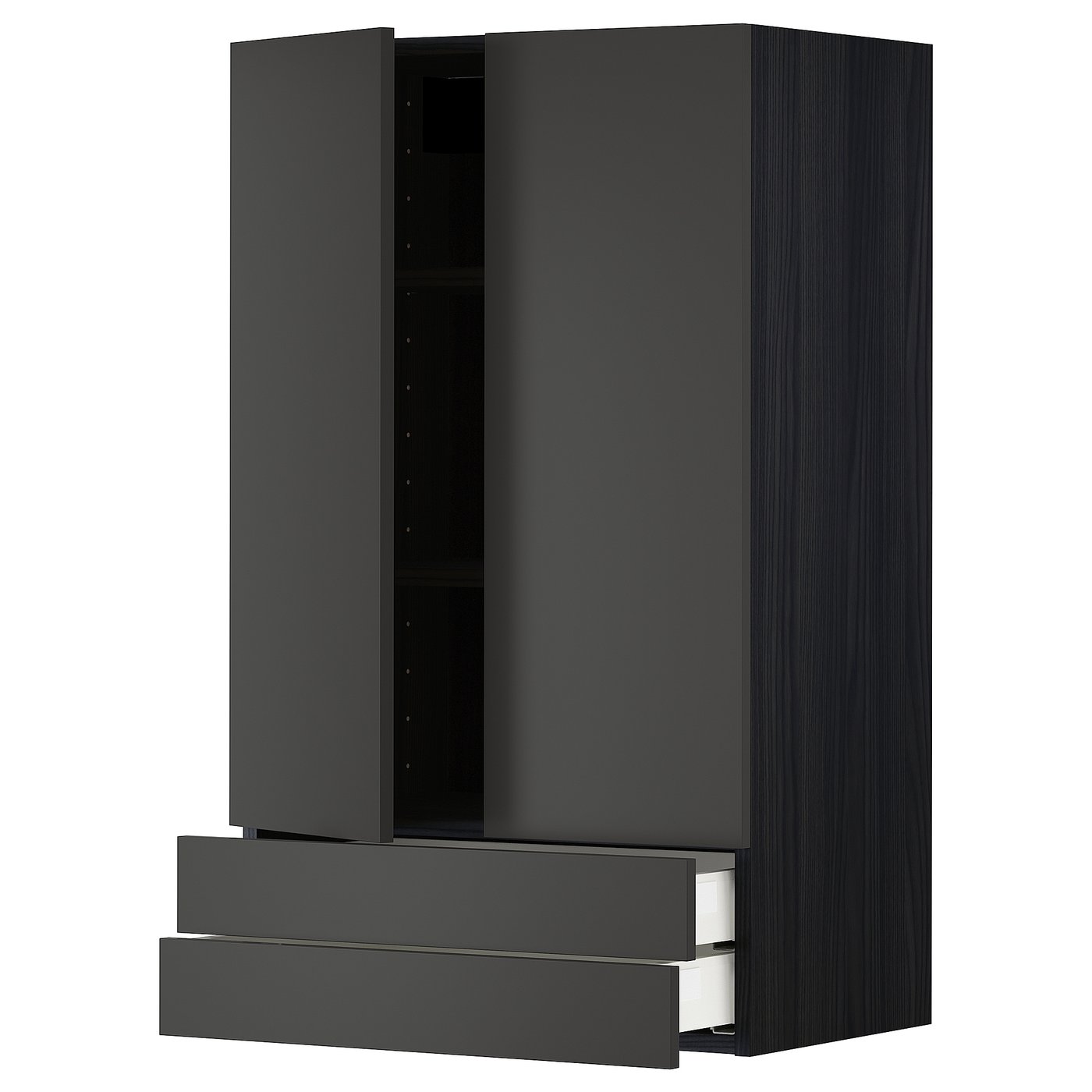 (1 product)METOD / MAXIMERA Wall cabinet w 2 doors/2 drawers - black/Nickebo matt anthracite 60x100 cm