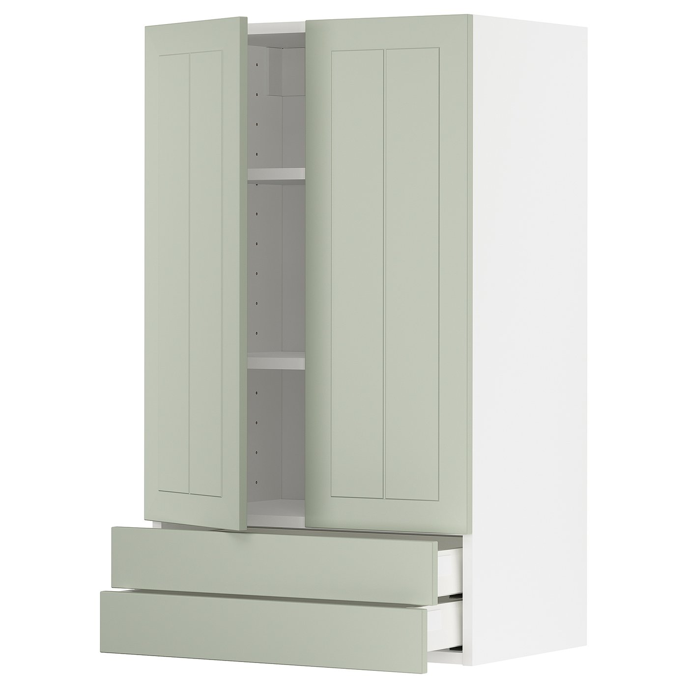 IKEA METOD Wall cabinet with 2 doors and 2 drawers 60x100 cm STENSUND light green/white
