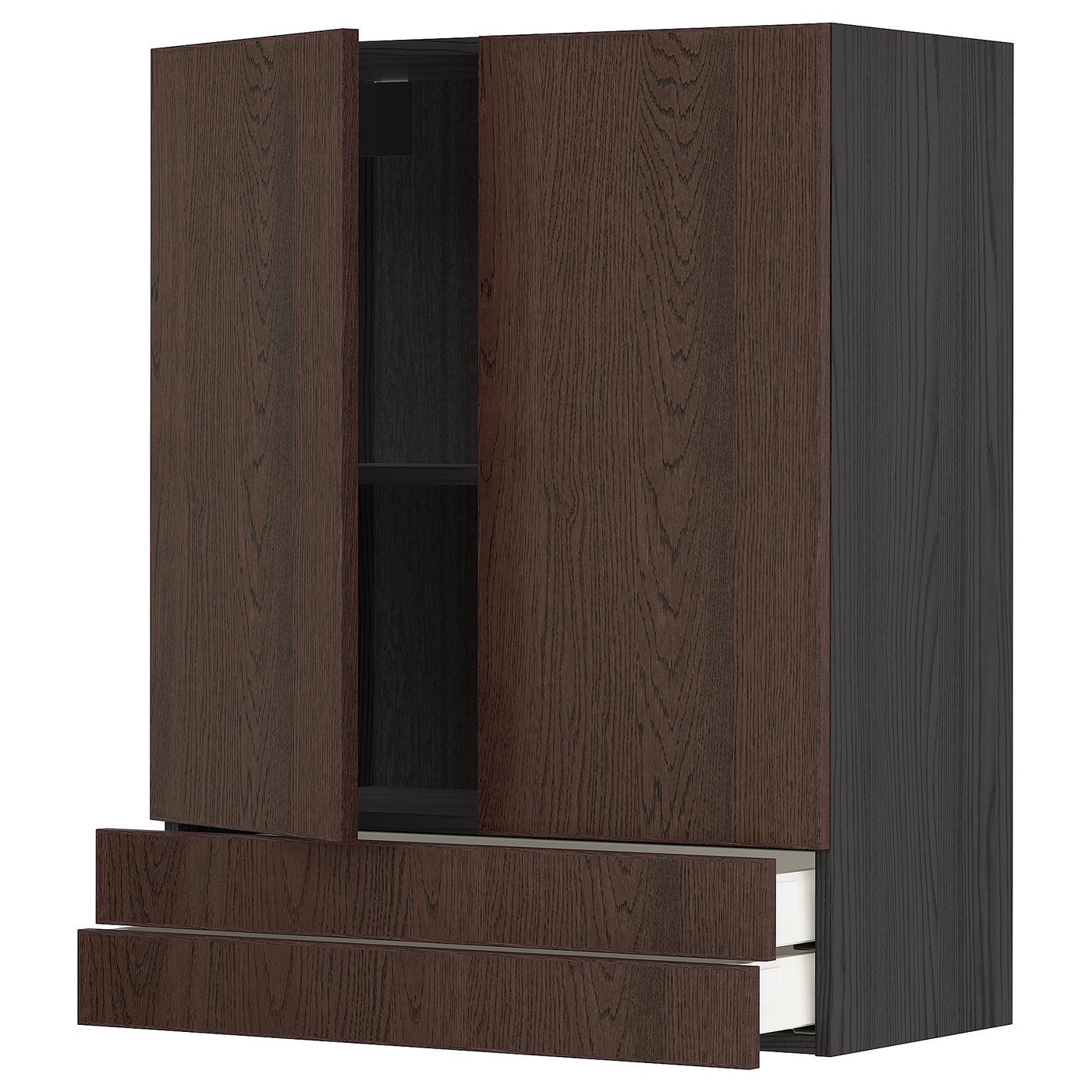 (1 product)METOD / MAXIMERA Wall cabinet w 2 doors/2 drawers - black/Sinarp brown 80x100 cm