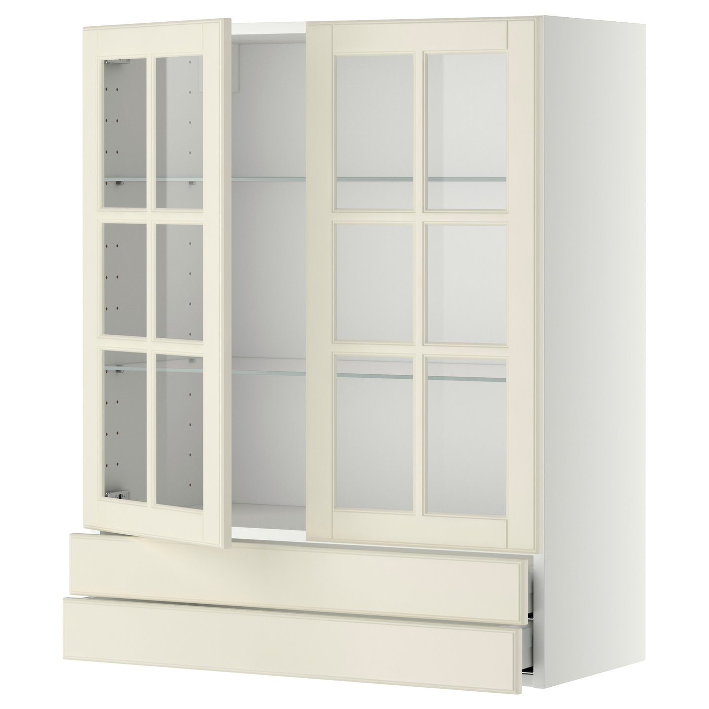 IKEA METOD Wall cabinet with 2 glass doors and 2 drawers 80x100 cm BODBYN off-white