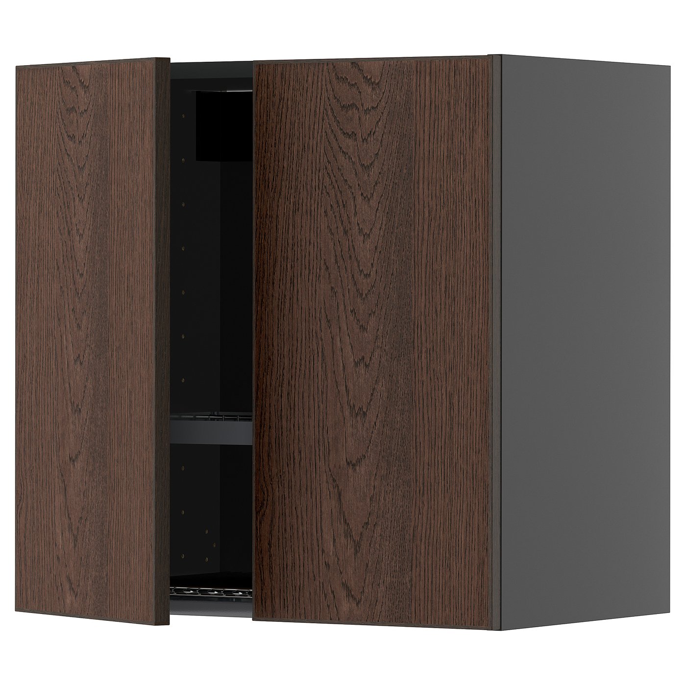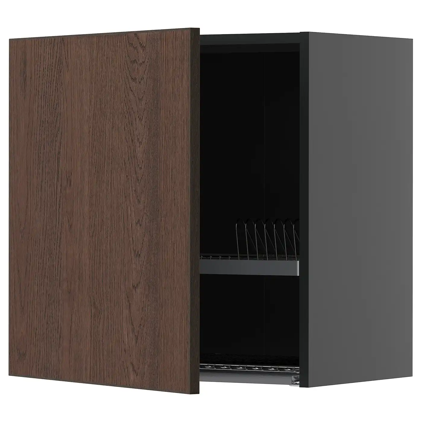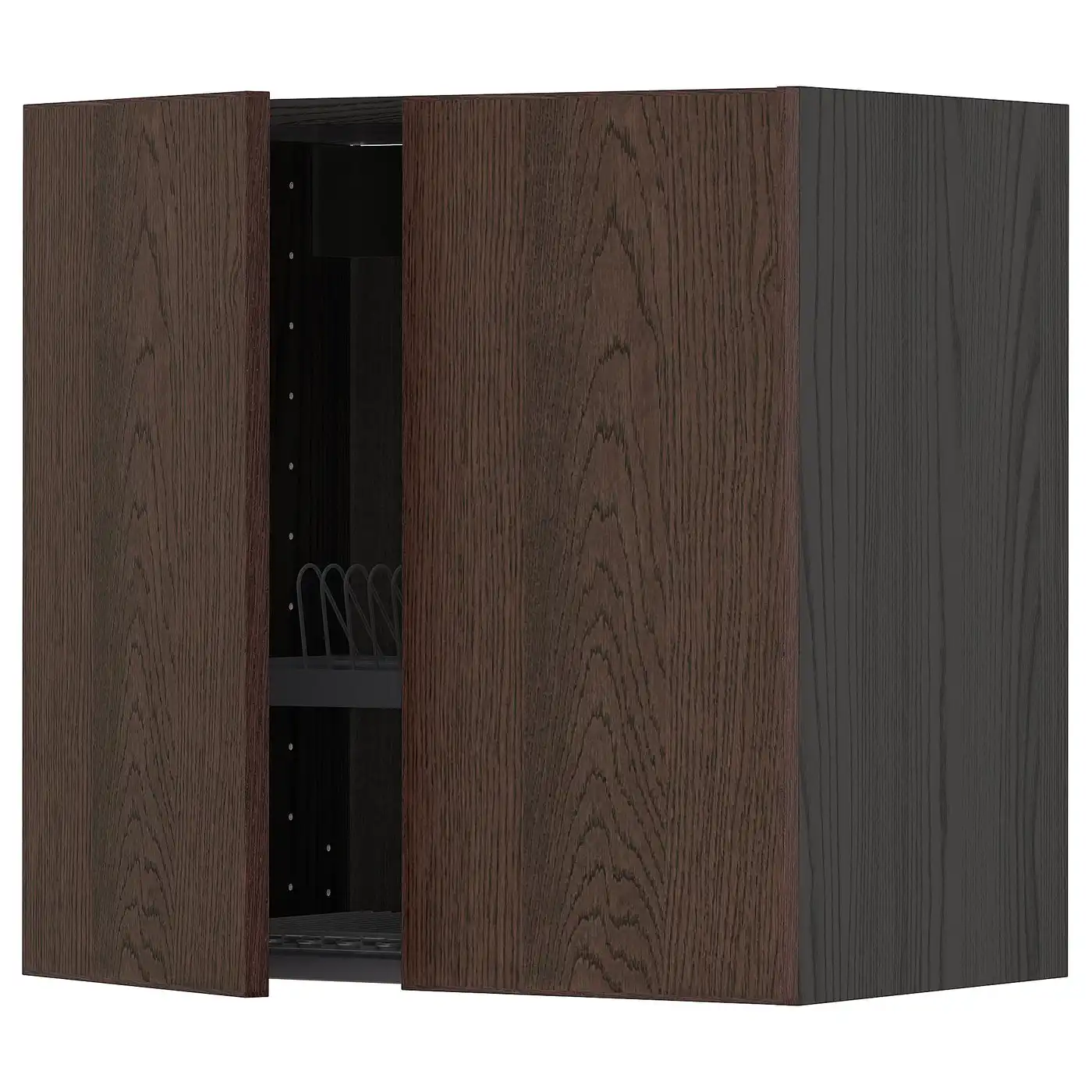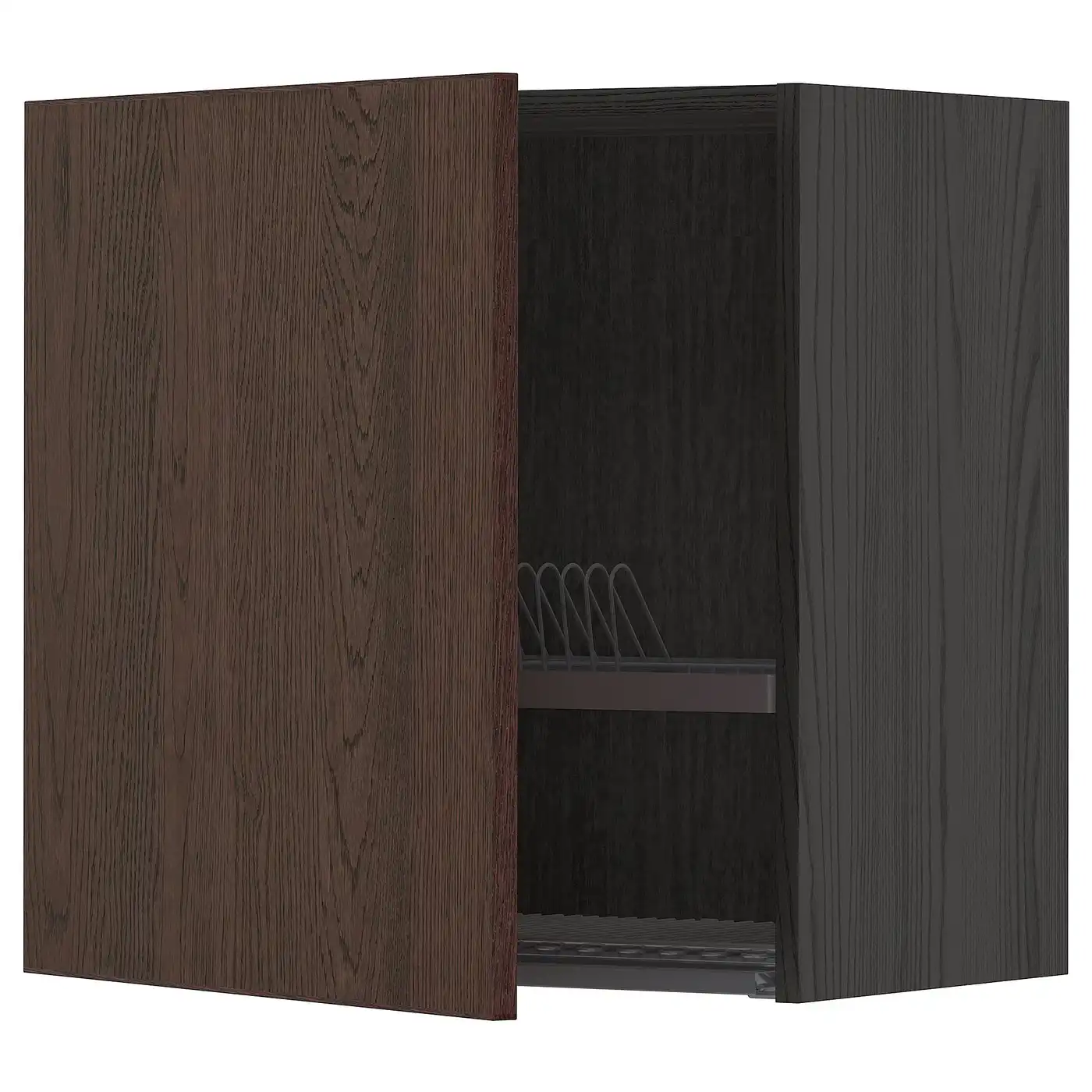 IKEA METOD Wall cabinet with dish drainer 60x60 cm SINARP black/brown