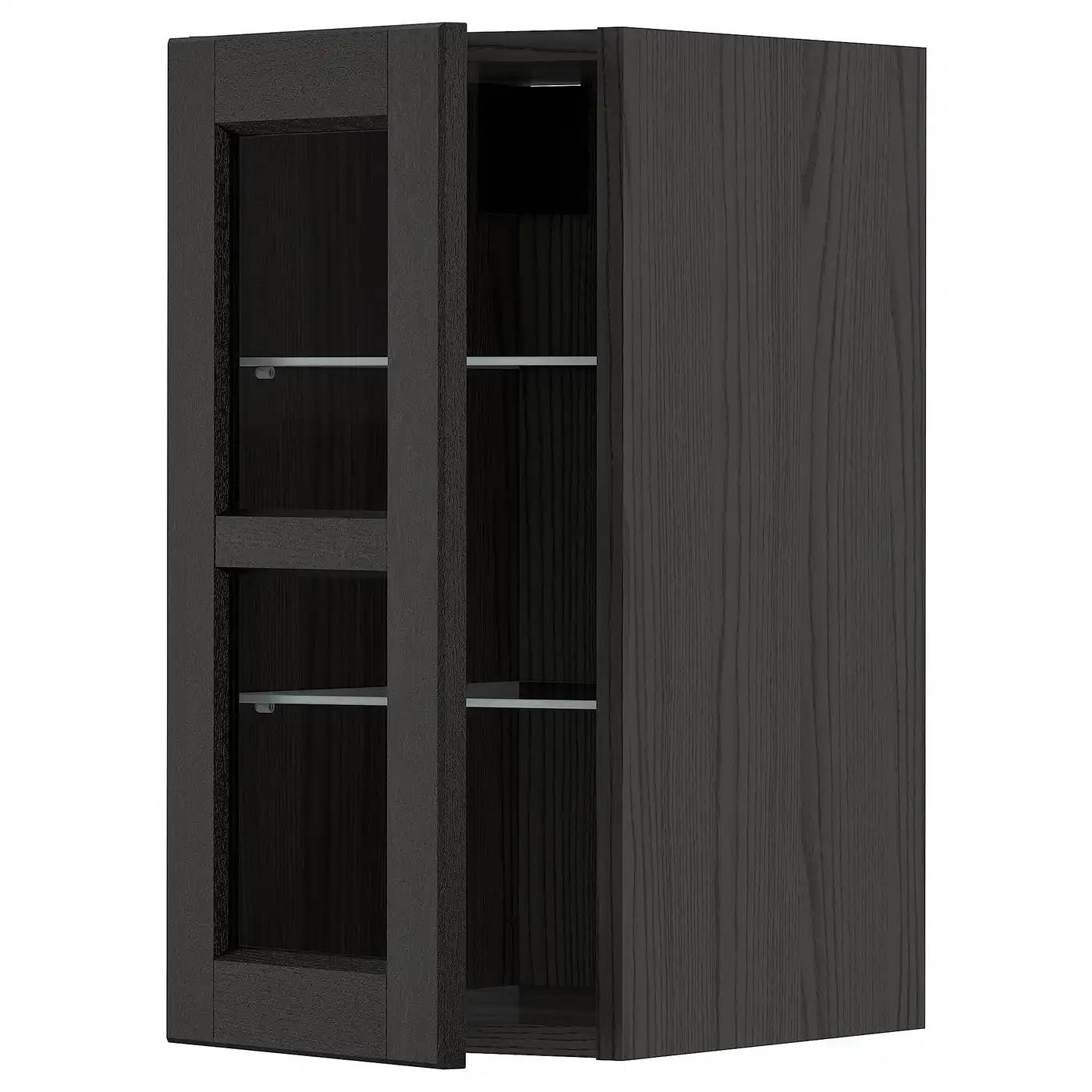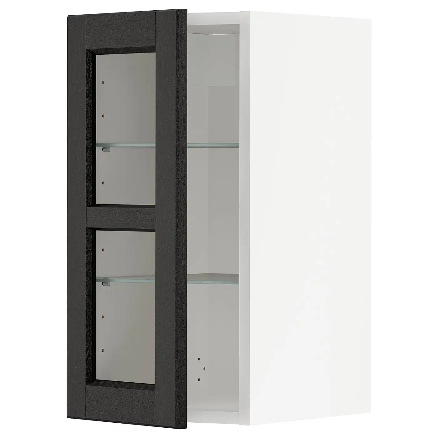 IKEA METOD Wall cabinet with shelves and glass door 30x60 cm LERHYTTAN black stained/white