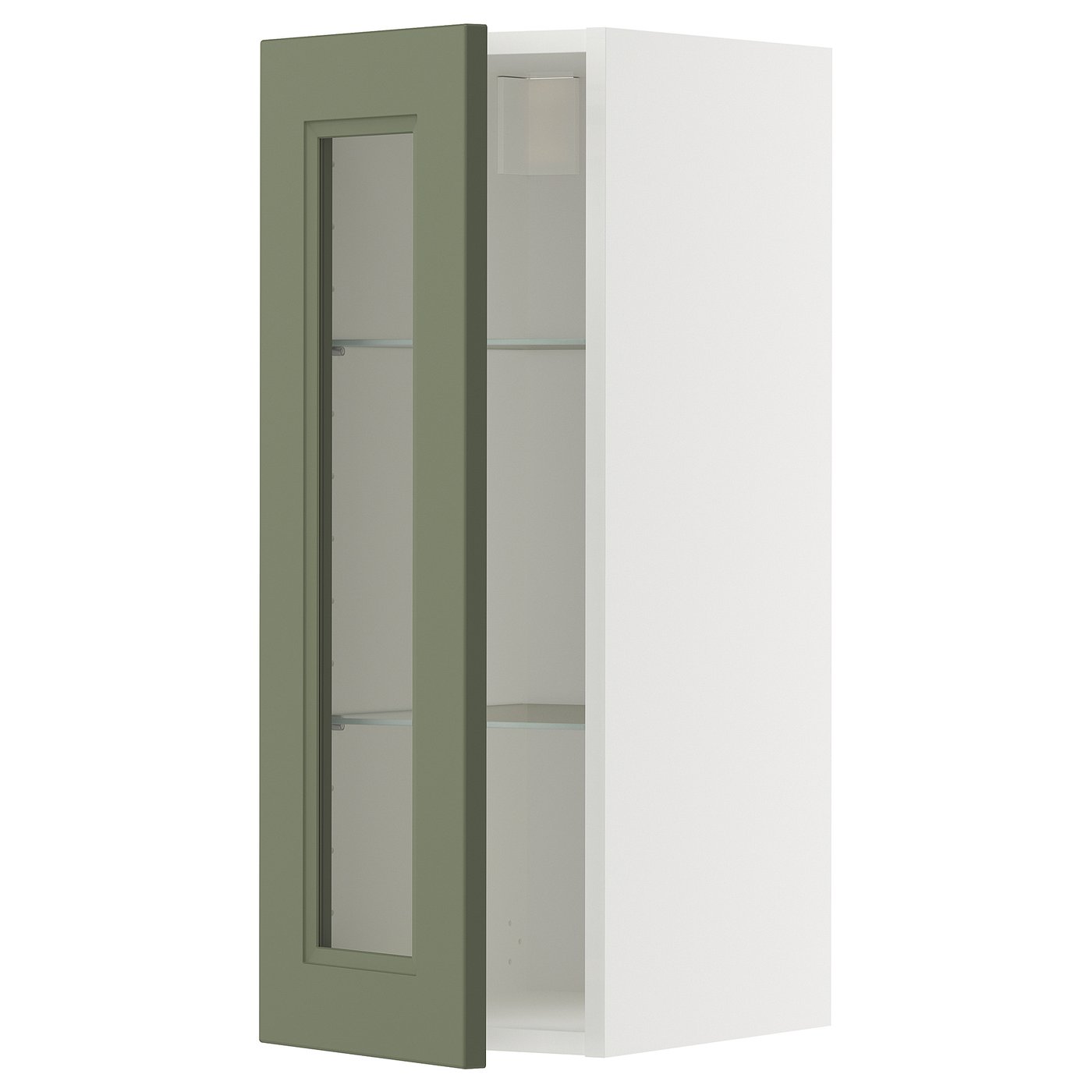 (1 product)METOD Wall cabinet w shelves/glass door - white/Axstad grey-green 30x80 cm