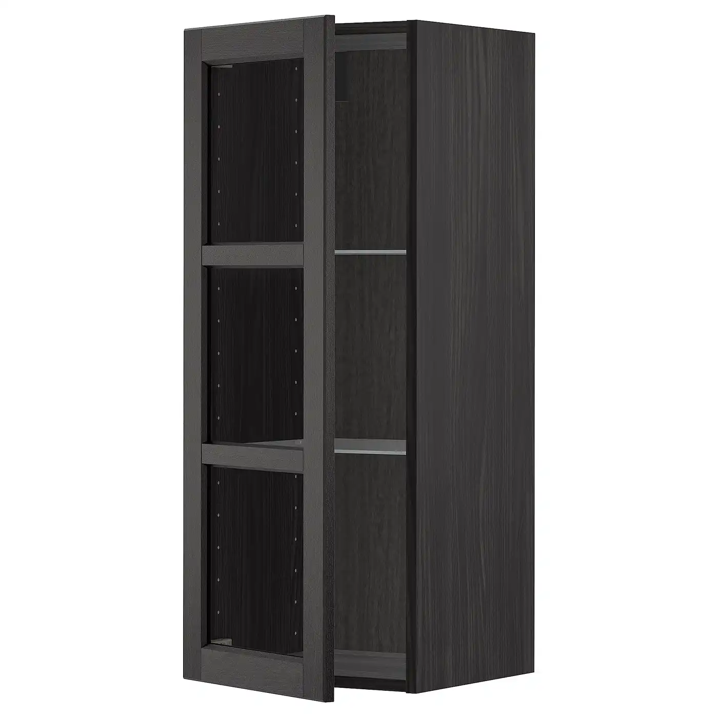 IKEA METOD Wall cabinet with shelves and glass door 40x100 cm LERHYTTAN black stained/white
