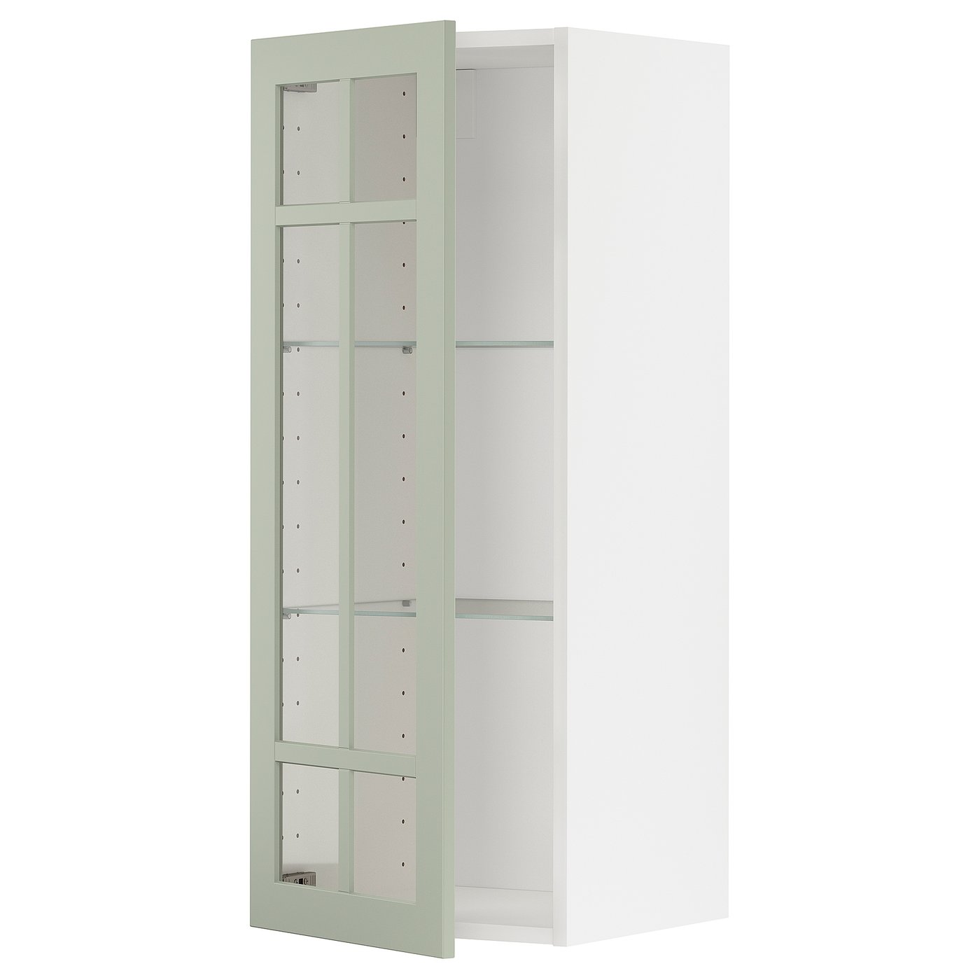 IKEA METOD Wall cabinet with shelves and glass door 40x100 cm STENSUND light green/white