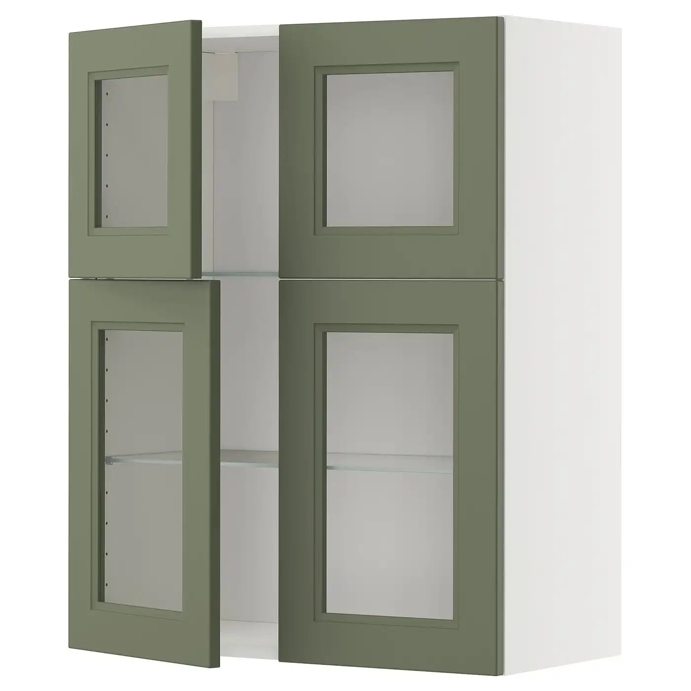 METOD Wall cabinet w shelves/4 glass drs - white/Axstad grey-green 80x100 cm