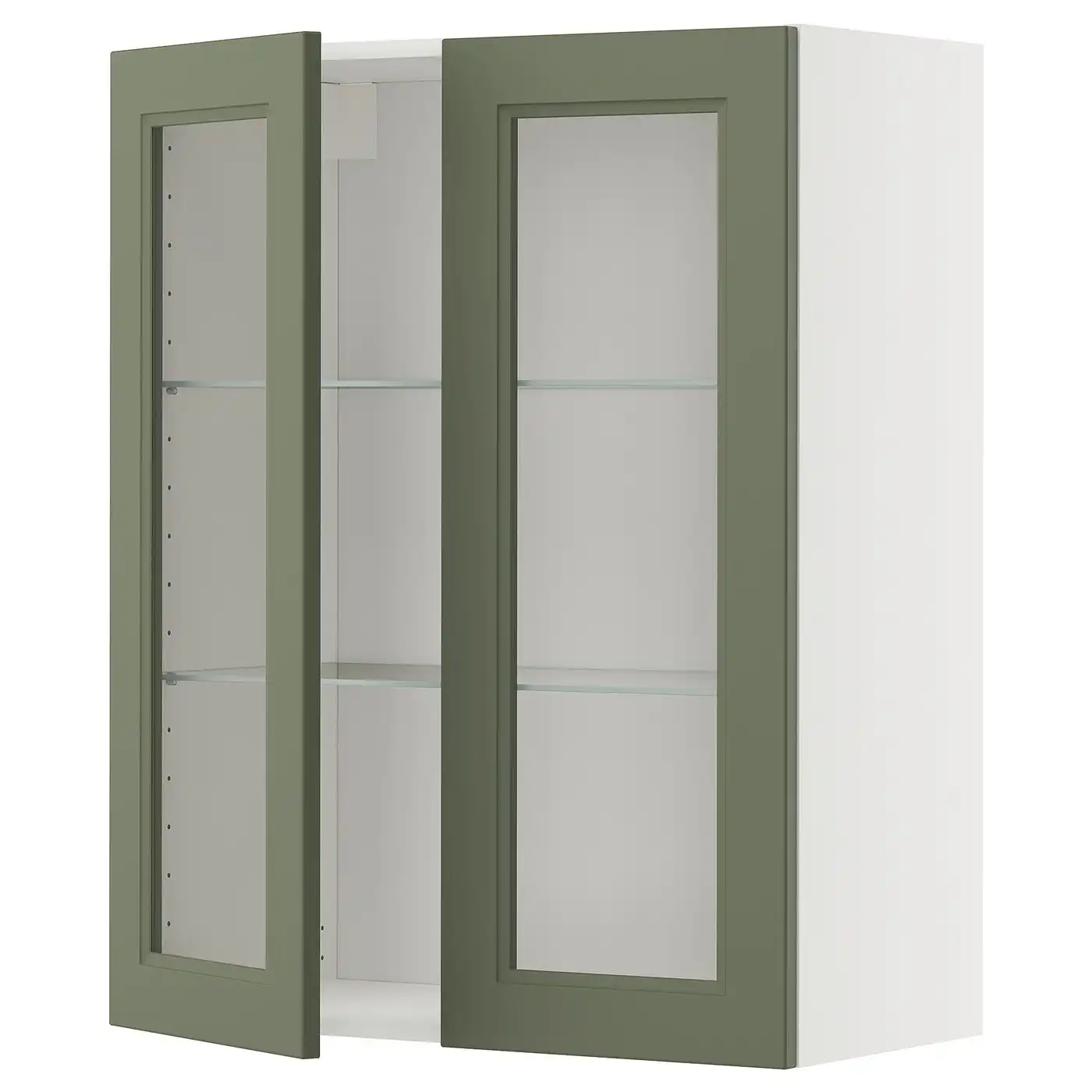 (2 products)METOD Wall cabinet w shelves/2 glass drs - white/Axstad grey-green 80x100 cm