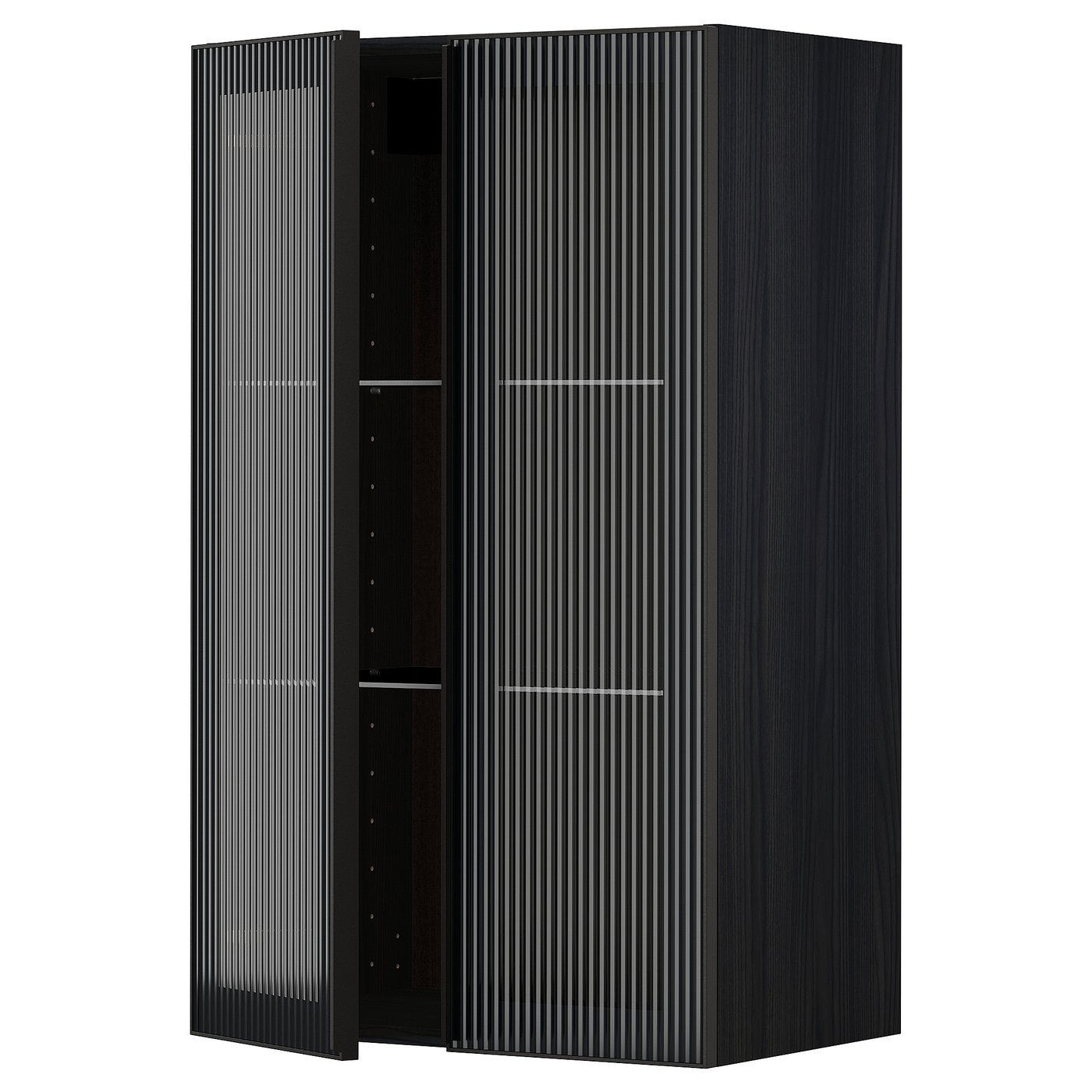 IKEA METOD Wall cabinet with shelves and glass doors 60x100 cm HEJSTA black/anthracite reeded glass