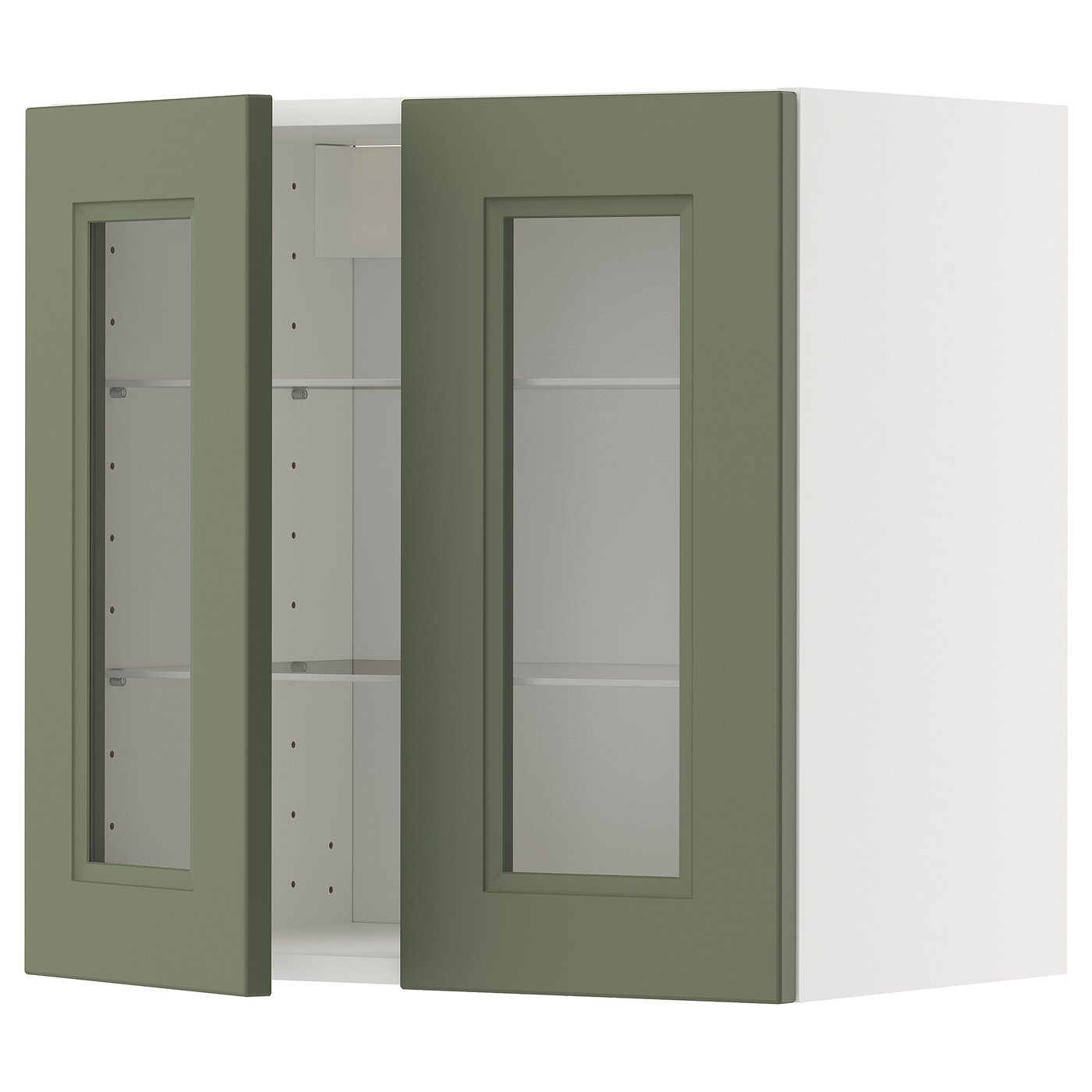 (1 product)METOD Wall cabinet w shelves/2 glass drs - white/Axstad grey-green 60x60 cm