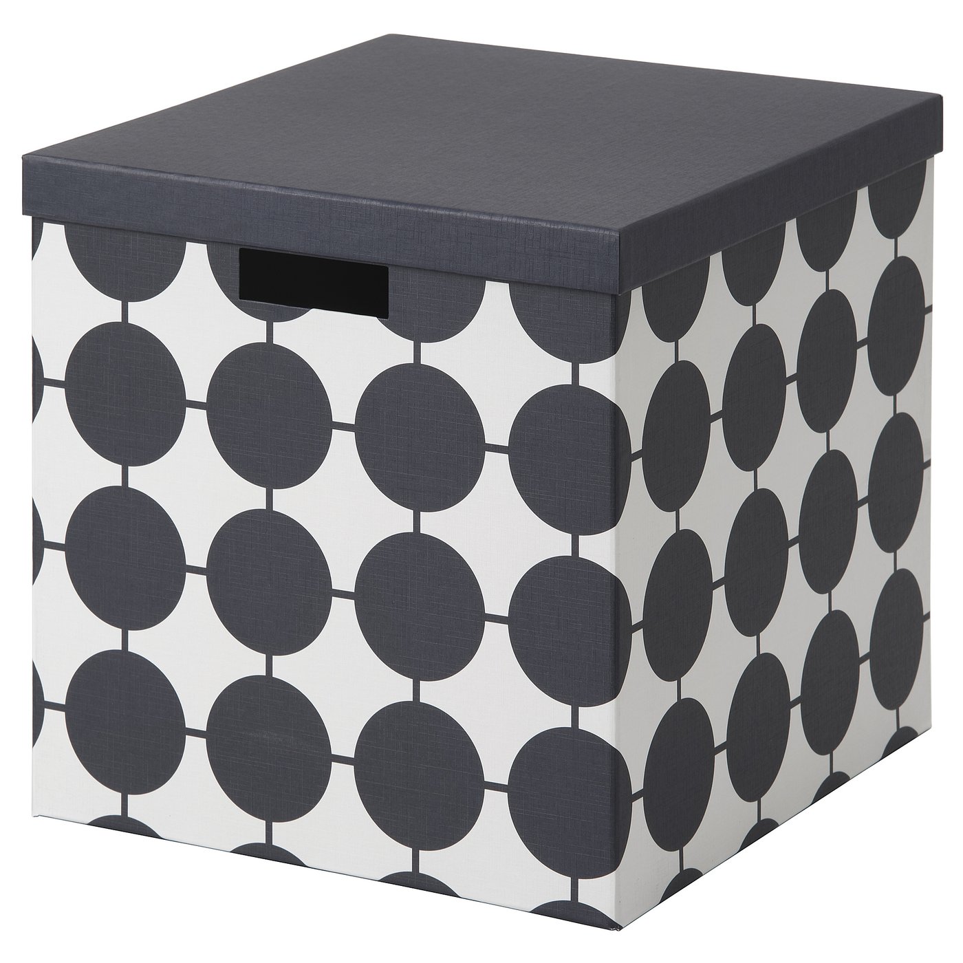 (1 product)TJENA Storage box with lid - white black/dotted 32x35x32 cm