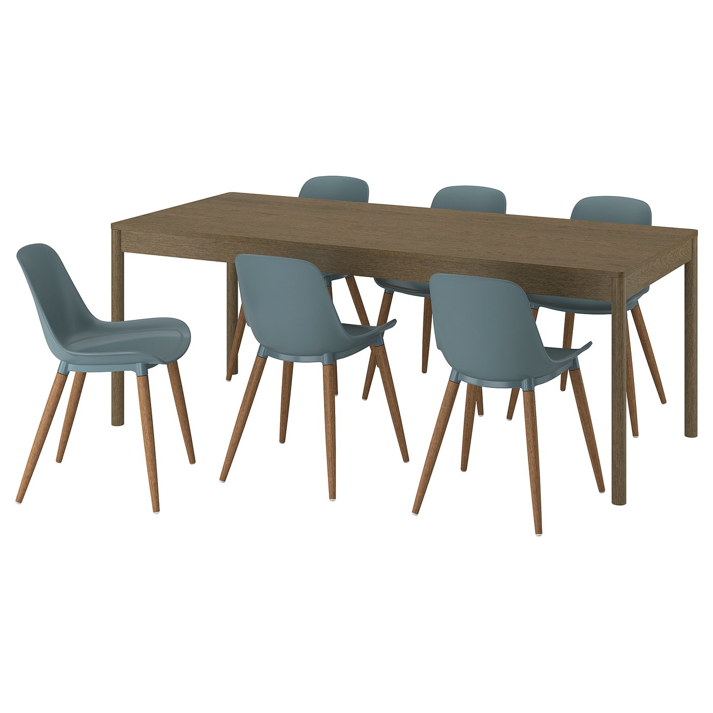(1 product)TONSTAD / GRÖNSTA Table and 6 chairs - brown oak veneer/grey-turquoise 200x85 cm
