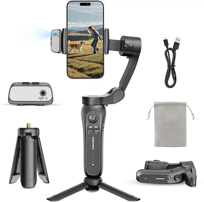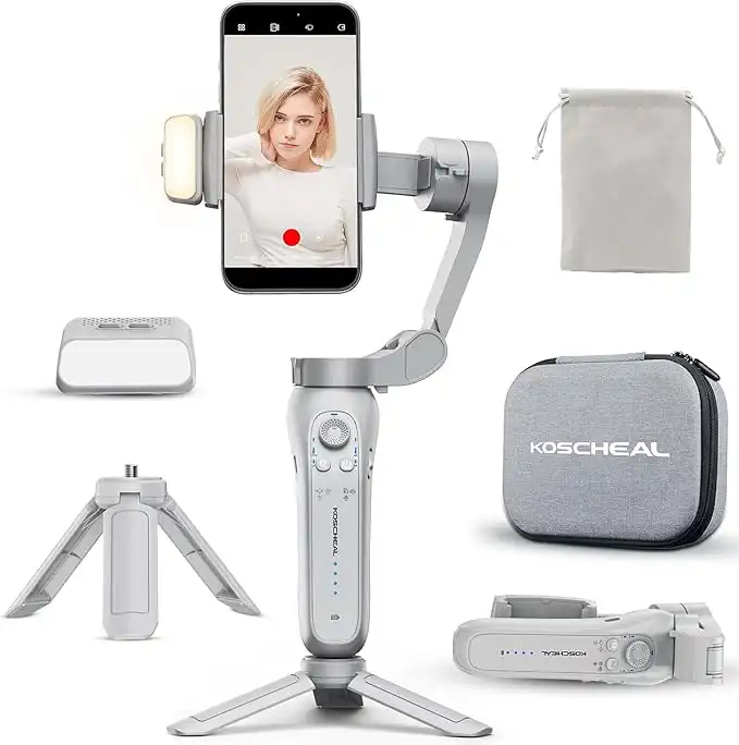 (2 products)KOSCHEAL Cell Phone Stabilizer, Portable and Foldable 3-Axis Gimbal Stabilizer, Ideal for Vlogging, Youtube, TikTok and Vlog Live for Android and iOS