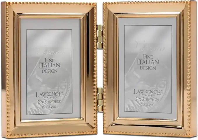 Lawrence Frames Classic Bead Picture Frame, 2.5x3.5 Double, Gold, 2 Count