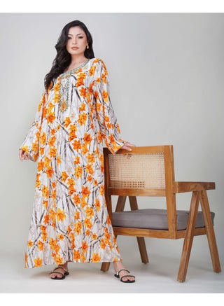 Linelle Ladies Floral Jalabiya Full-Sleeve Embroidered Neck
