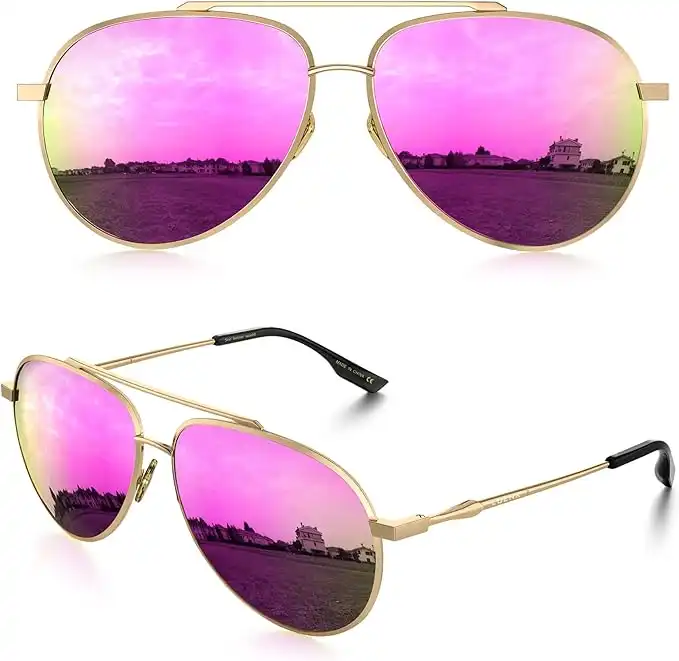 (4 products)LUENX Aviator Sunglasses for Women Men Polarized Mirrored Dark Rose Red Lens Gold Metal Frame Large 60mm