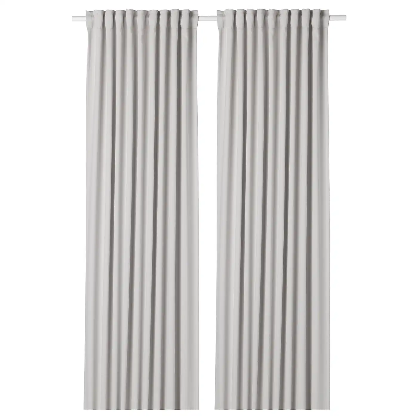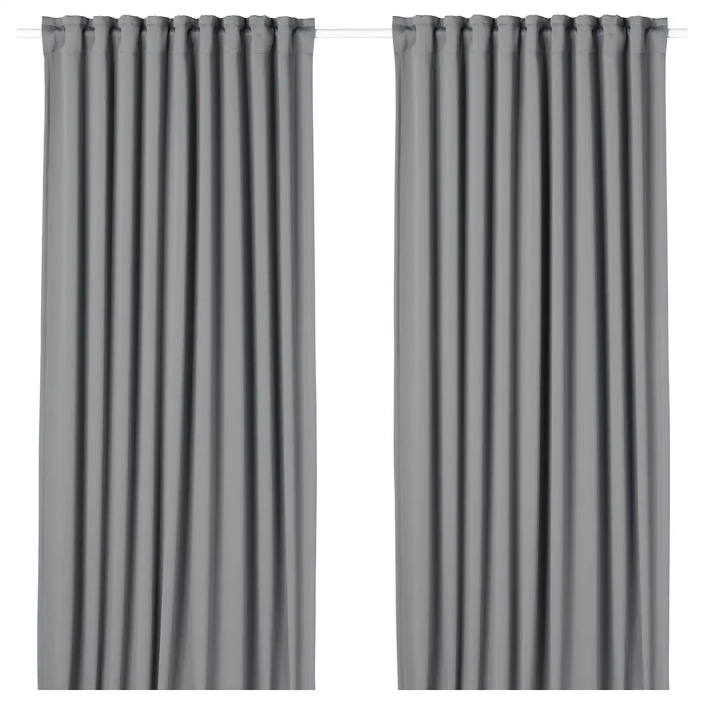 MAJGULL Block-out curtains, 1 pair - grey/with heading tape 145x300 cm
