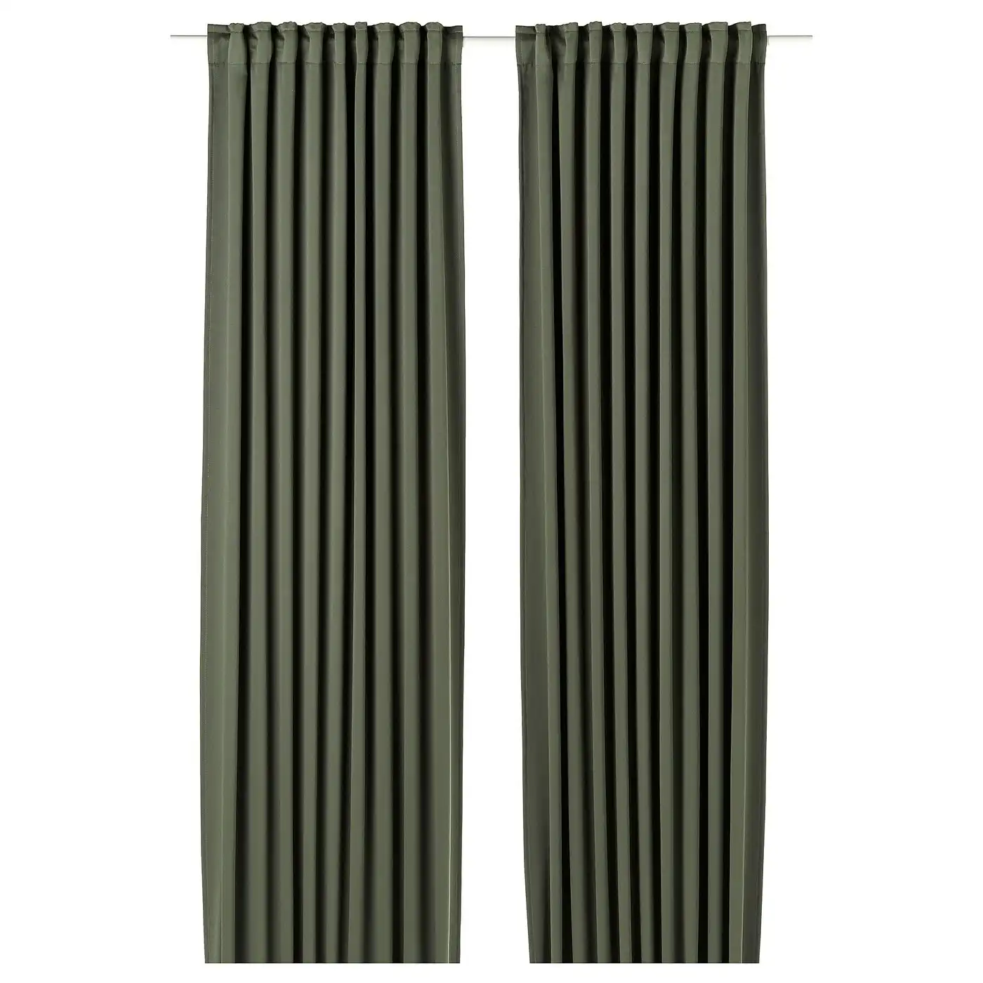 (5 products)MAJGULL Block-out curtains, 1 pair - dark green/with heading tape 145x300 cm