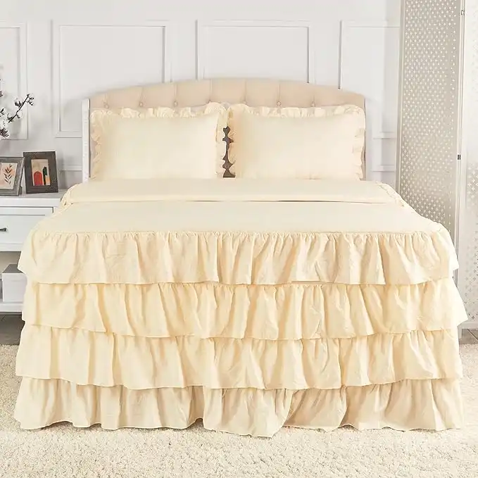 Mellanni Farmhouse Cream Ruffle Bedding Set - Bedspread Full Size & 2 Pillow Shams - 30" Tall, 3-Sided Comforter Ruffles - Shabby Chic Bedding - Multi-Ruffled Full Size Bedspread (Full, Ivory)