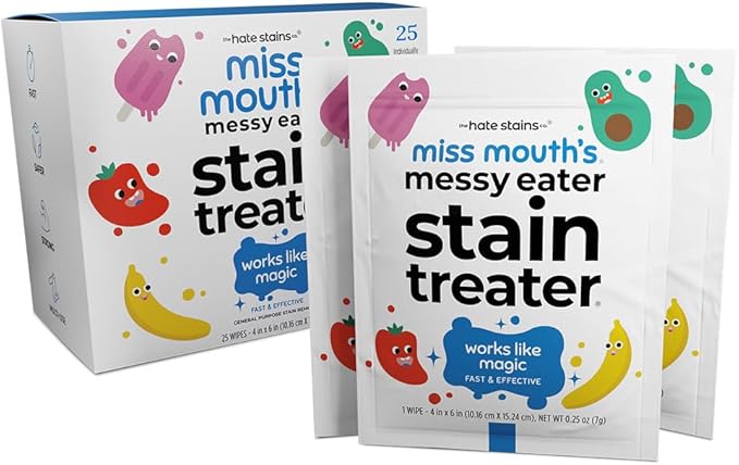 (1 product)Miss Mouth's Messy Eater Non-Toxic Baby and Kids Stain Remover for Clothing, Carpet, Fabric, and Upholstery. Kid d and Mom Approved (25 Wipes)