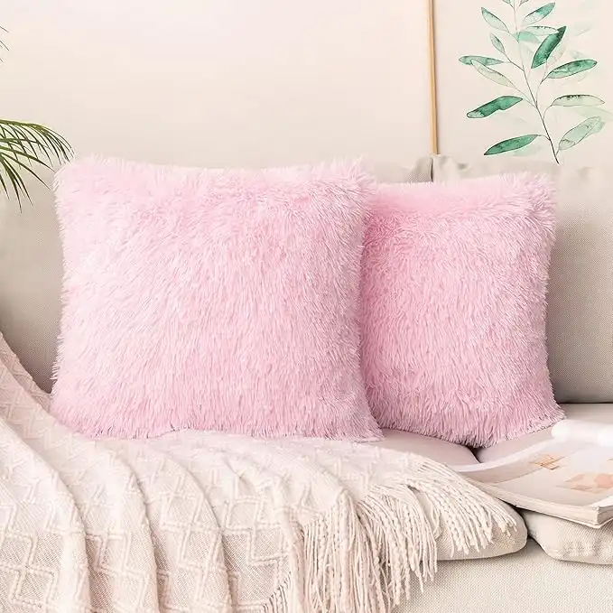 MIULEE Pack of 2 Luxury Faux Fur Throw Pillow Cover Deluxe Decorative Plush Pillow Case Cushion Cover Shell for Sofa Bedroom Car 14 x 14 Inch Pink