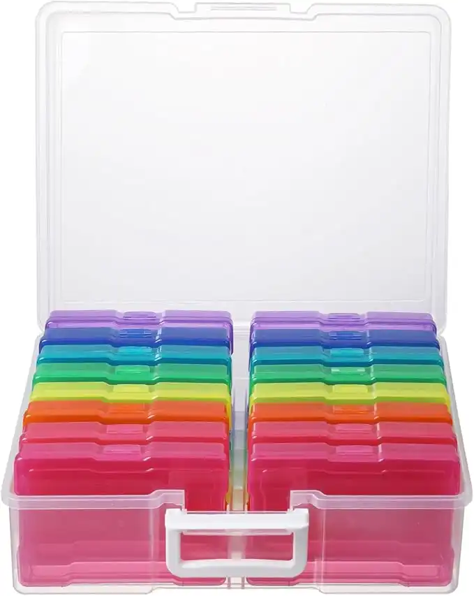 (2 products)Novelinks Photo Storage Box with 16 Individual Photo Boxes for Tools, Crafts, Photos, 36 x 28 x 13 cm (Transparent)