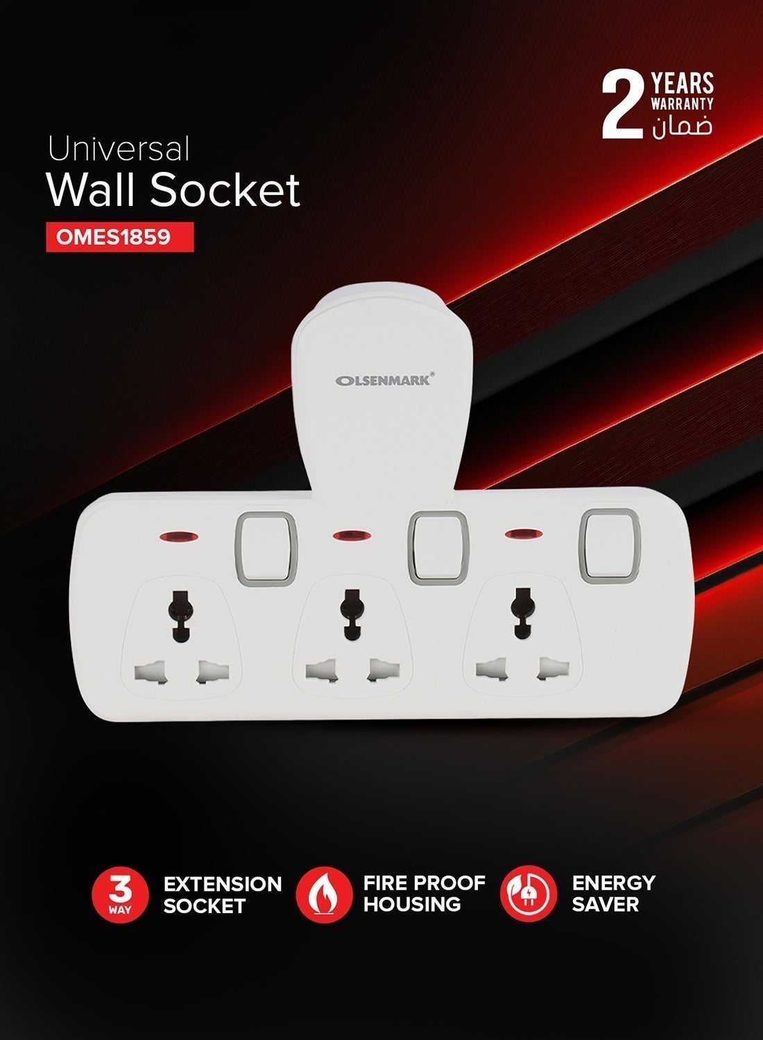 Olsenmark 3-Way Wall Socket Individually Switched