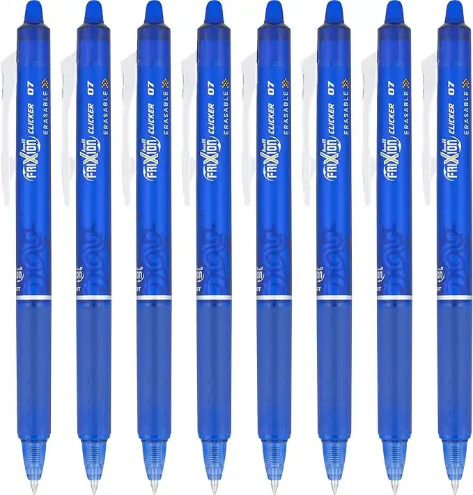 (3 products)Pilot Frixion Clicker Erasable and Retractable Gel Ink Pens, Fine Point, Blue Ink, 8 Count