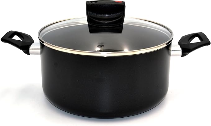 (1 product)Prestige Safecook Nonstick Casserole 20 cm | Aluminum Cooking Pot with Glass Lid | Induction Compatible Cookware | PR22099 - Black