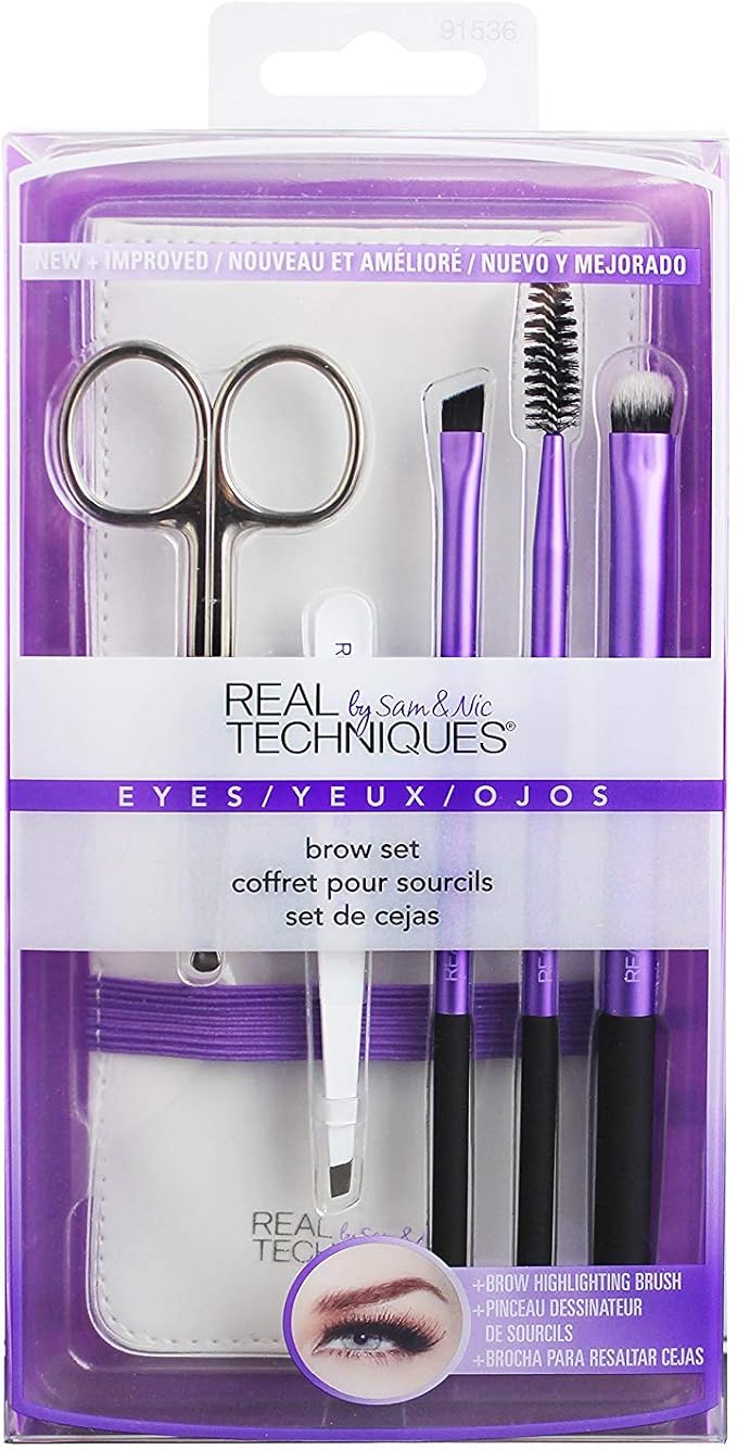 Real Techniques Brow Make-Up Brush set (includes tweezers), Pack of 1