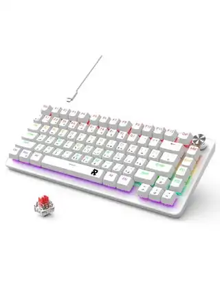 ROCK POW 70% Gaming Keyboard,Arabic English 82 Keys Mechanical Keyboard with RGB Backlit 19 Modes,Volume Lighting Knob Wired Mini PBT Keycaps for PC Gaming and Working (Red Switch) White