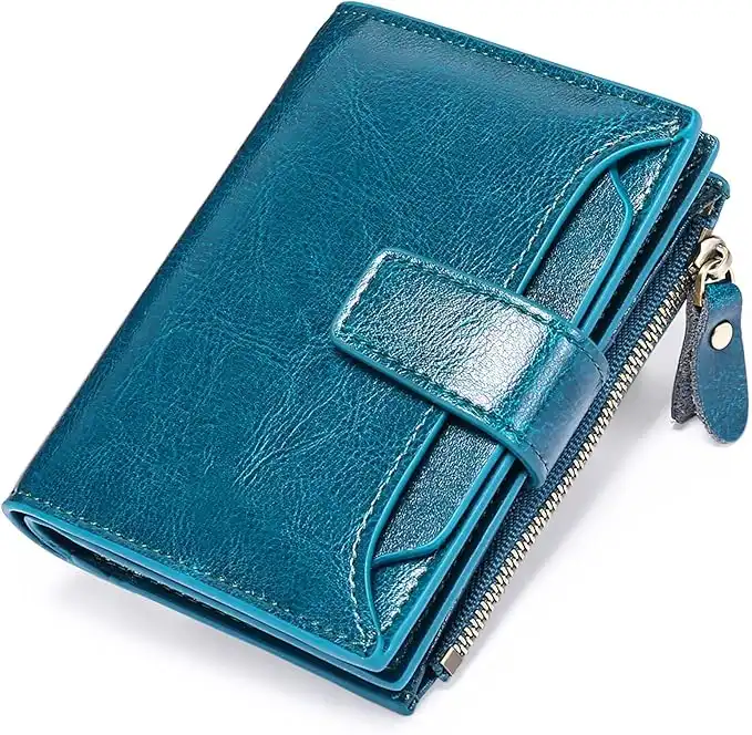 (6 products)SENDEFN Women's RFID Blocking Leather Small Compact Bi-fold Zipper Pocket Wallet Card Case Purse with ID Window