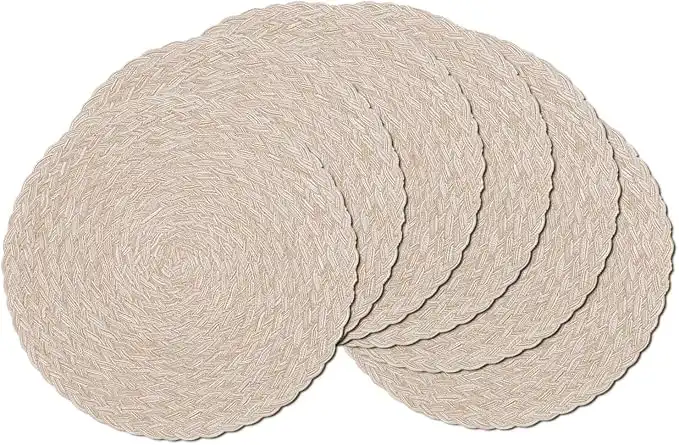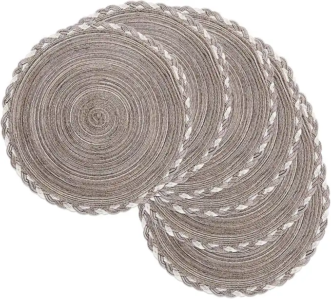 SHACOS Round Braided Placemats 15-inch Set of 6