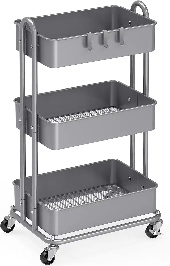 (6 products)Simple Houseware Heavy Duty 3-Tier Metal Utility Rolling Cart, Pink