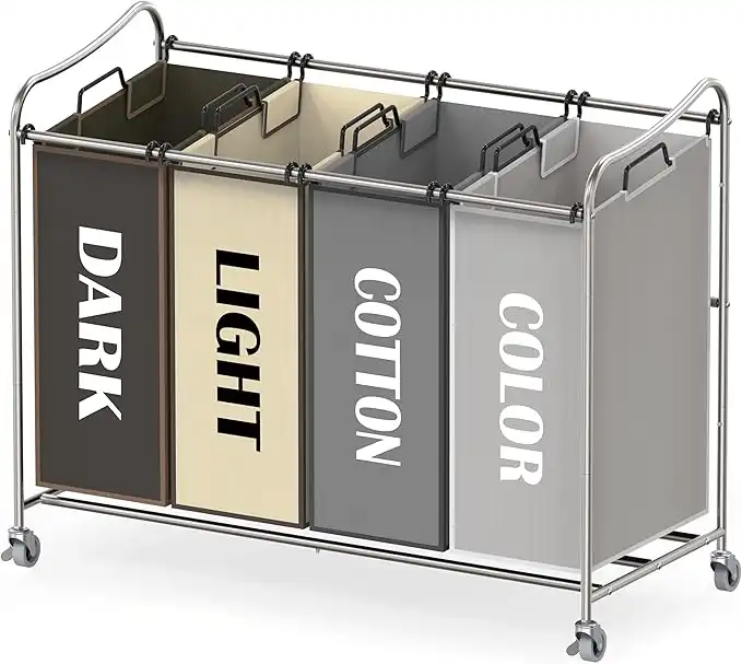 Simple Houseware 4-Bag Heavy Duty Laundry Sorter Rolling Cart