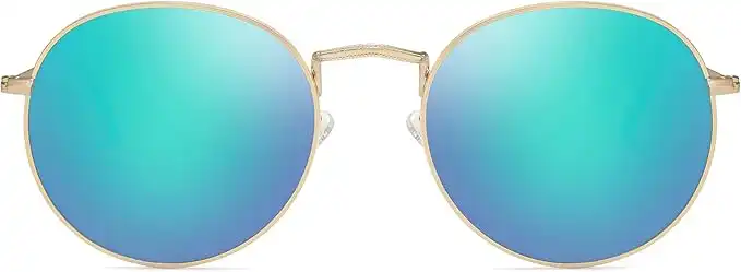 (2 products)SOJOS Small Round Polarized Sunglasses Mirrored Lens Unisex Glasses SJ1014 3447 with Gold Frame/Green Mirrored Lens