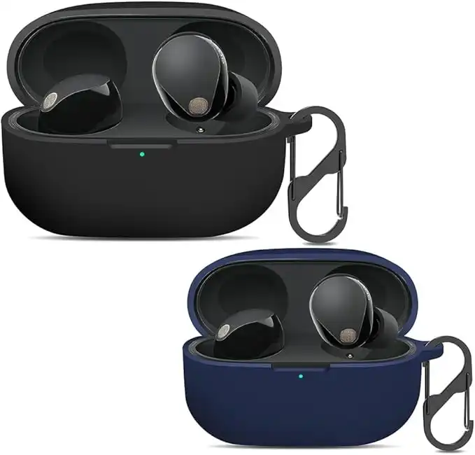 (7 products)Khazna Case Cover for Sony WF-1000XM5, Silicone Protective Skin Case for Sony XM5 Wireless Earbuds, Front LED Visible (Black and Blue)