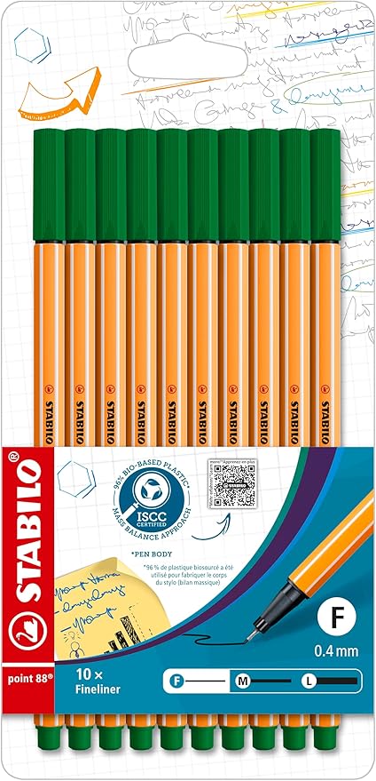 STABILO Fineliner - point 88 - Wallet of 10 - Green