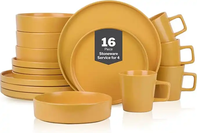 (2 products)Stone lain Cleo Stoneware Dinnerware Set, 16-Piece Service for 4, Yellow