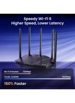 Tenda RX12 Pro WiFi 6 AX3000 Dual Band Gigabit Router, 2404Mbps/5GHz + 574Mbps/2.4GHz, 4 Gigabit Ports, 5x6dBi Antennas,160MHz Bandwidth, WiFi+ Mesh, OFDMA/VPN/WPA3/IPV6/TWT black