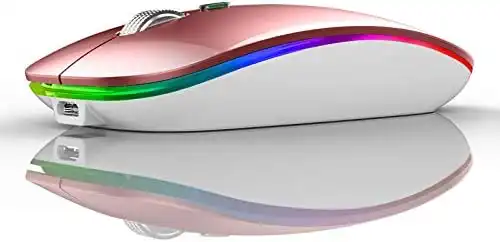 TENMOS Wireless Bluetooth Mouse, LED Slim Dual Mode (Bluetooth 5.1 + USB) 2.4GHz Rechargeable Silent Bluetooth Wireless Mouse with Type C Adapter for Laptop/MacBook/iPad OS 13 and Above (Rose Gold)