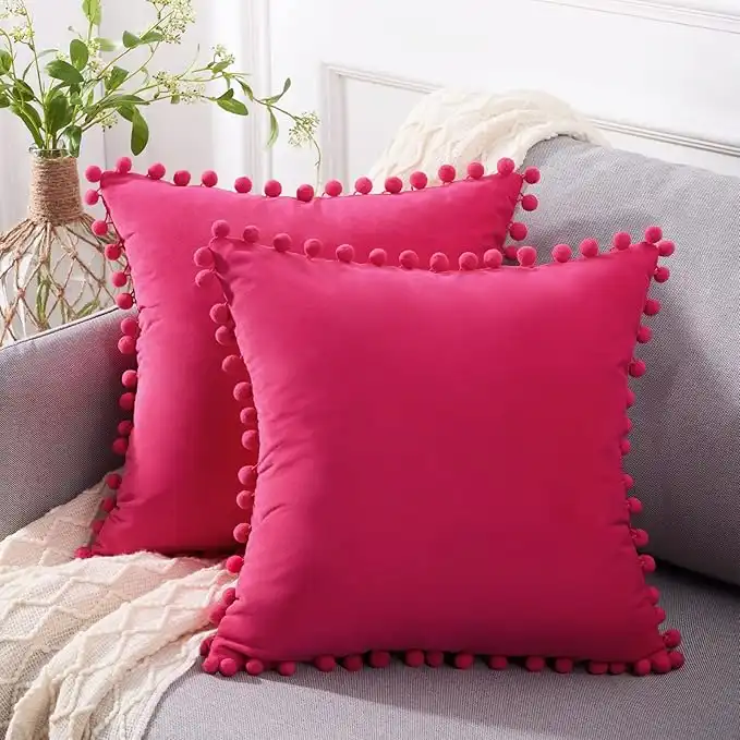 Top Finel Velvet Pom-Pom Decorative Square Throw Pillow Covers Pack of 2 16x16 Inch — Compare Prices Across UAE Stores | DeserTracker