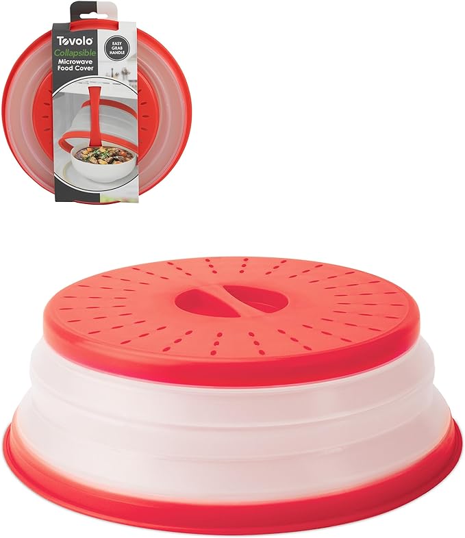 (1 product)Tovolo Vented Collapsible Microwave Food Cover With Easy Grip Handle, Dishwasher-Safe, BPA-Free Silicone & Plastic, 10.5" Round, Red
