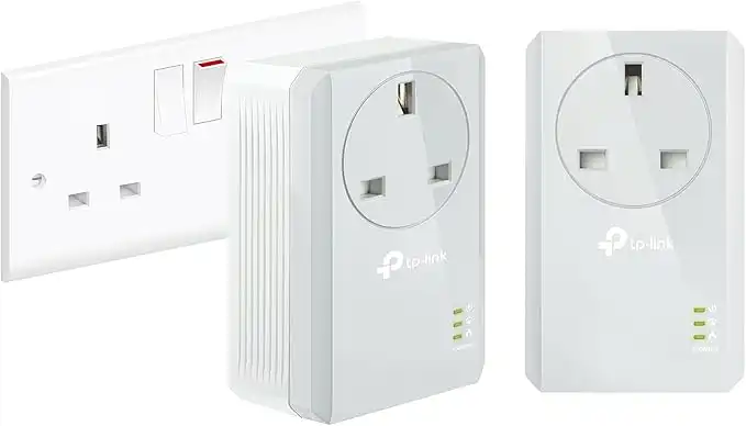 (2 products)TP-Link TL-PA4010PKIT Passthrough Powerline Adapter Starter Kit, No Configuration Required, UK Plug, Pack of 2